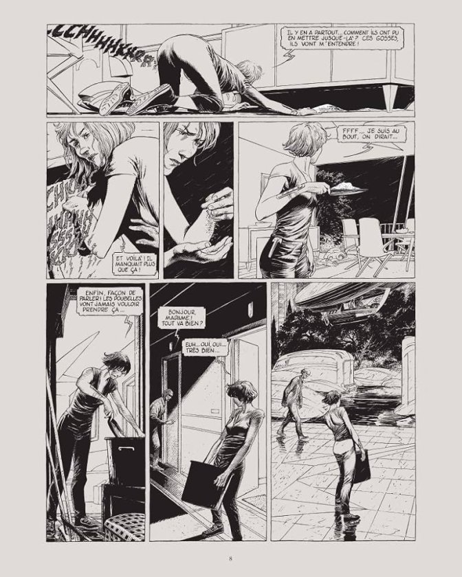 Pour donner vie, corps et structure à ce récit, il fallait bien le coup de crayon de Schuiten, fin et créatif comme celui d’un architecte, cadré et précis comme celui d’un ingénieur. Plus que les personnages, extrêmement réalistes, toujours évidents d’affolement ou de calme quand ils devraient ressentir l’un plutôt que l’autre, c’est évidemment les décors qui sont le fondement, l’alpha et l’omega du style des Cités Obscures. La ville contemporaine y est sublimée, constamment mise en avant, jamais éludée à l’arrière-plan, les intérieurs d’appartements bourgeois semblent être des prétextes à y intégrer une pierre d’un poids en nombre premier, tout comme Michaux voulait mettre du chameau à Honfleur... D’ailleurs, ce luxe de détail se retrouve jusqu’au plus profond d’un désert, lorsqu’une tour abandonnée, symbole d’une autre civilisation décadente qui pourrait être explorée, s’impose dans la planche comme un protagoniste, un élément central, alors qu’elle ne relèverait que de l’anecdote pour une autre bande-dessinée.