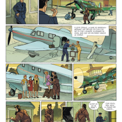 Le trait de Claude Plumail garde une certaine énergie. Ce périple, de la France à l’Angleterre en passant par l’Afrique avant de revenir finalement en...France, nous permet de découvrir de nombreux décors, paysages terrestres, étendues marines, où circulent avions, bateaux, camions. La mise en scène nous donne une vue globale, impressionnante, des événements. La composition, jouant sur la taille des cases et leur enchaînement, nous positionne près des personnages. Les couleurs de Sébastien Bouet rendent bien la chaleur du désert, les flammes des appareils en feu et des bombardements, cette mer aux teintes changeantes qui s’étend devant les bateaux ou encore les vertes forêts de France.
