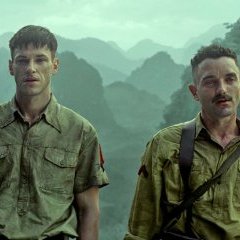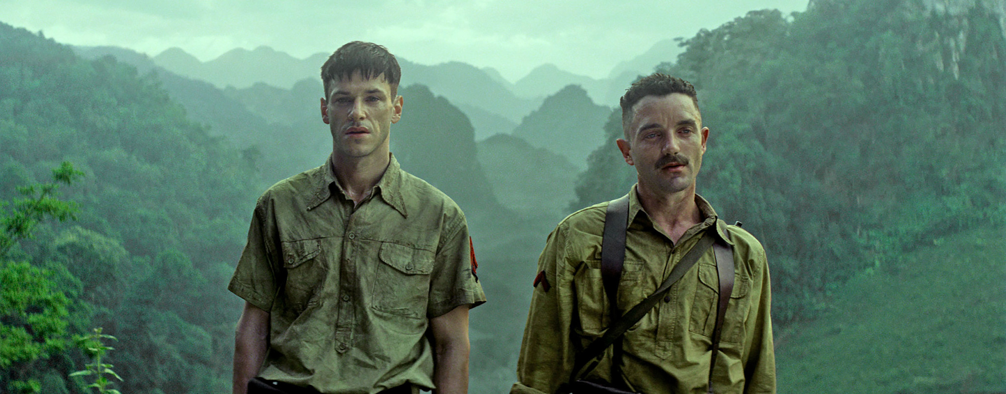 De même ce sentiment d’étrangeté et d’irréalité est accentué par les brumes de la jungle, l’ennemi invisible et les fumeries d’opium. Ces soldats perdus aux confins du monde, puisque le titre préfigure ce sentiment d’ailleurs, opposent de façon presque désespérée, comme un ancrage à la terre, une trivialité parfois frontale, et l’horreur ne reste pas tout le temps hors-champ. Dans un univers où la virilité est une notion exacerbée et encouragée, la frustration et la misère sexuelle suinte par tous les pores. Corps transpirants et jungle humide, c’est l’inverse de la sensualité et des images d’une Indochine fantasmée. Jusqu’au personnage de Cavagna, interprété par Guillaume Gouix, qui doit feindre d’être celui qu’il n’est pas pour asseoir une autorité dérisoire et une intégration nécessaire. La guerre empêche tous les corps de s’épanouir.