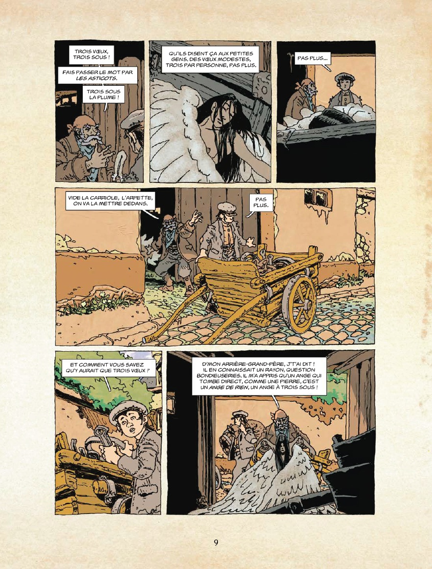 Critique : Certains diront que l’oeuvre de Gess a pour influence Eugène Sue et ses Mystères de Paris ou encore Orson Scott Card, mais pour ma part la filiation de la Brigade Chimérique se fait avec Mignola. Ses Contes de la Pieuvre y mêlent en effet un soupçon de policier rétro, façon Arsène Lupin ou Vidocq, mais toujours dans cette atmosphère âpre et charpentée d’uchronie fantastique, avec ses propres mythes et légendes qui semblent indus, comme cet ange tombé du ciel dont les plumes exaucent les vœux ou ce mystérieux Cerbère oublié dans le royaume des Mortels... Références nombreuses et multiples à la mythologie et l’Histoire, chaque personnage est le creuset d’une histoire quasi biblique, chaque péripétie est l’occasion d’un vengeance mystique qui couvre plusieurs générations, bref, ce conte de la pieuvre est une nouvelle fois... tentaculaire. Au lecteur non averti, il faut le protéger en lui disant que les cinquante premières pages passées, le canevas qui compose l’architecture de l’album se révèle grandiose et haletant, et le rythme est en cela saisissant qu’il n’est jamais figé ou régulier, se jouant de moments épiques s’étalant, de contemplations et de dialogues d’une lenteur infinie, pour ensuite passer par des scènes d’action courtes et intenses, tout en exposant une plongée dans l’âme d’une petite fille effrayée...