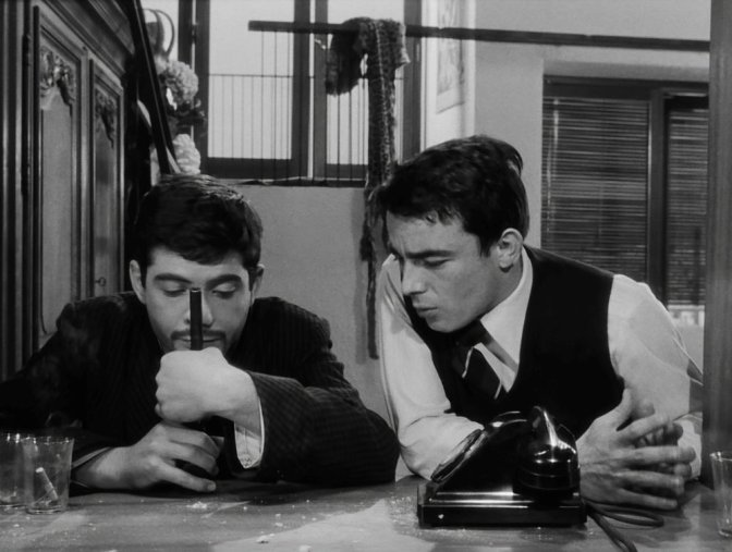 Critique : Second long métrage de Claude Chabrol, après Le beau Serge, Les cousins permet au réalisateur de retrouver son duo d’acteurs, Gérard Blain et Jean-Claude Brialy. Coécrit avec Paul Gégauff, avec lequel il collaborera à plusieurs reprises, le scénario met l’accent sur le contraste entre les deux cousins, au-delà de la convivialité et de la sympathie qu’ils semblent éprouver au départ l’un pour l’autre. Charles est introverti, calme et sérieux, quand Paul est un beau parleur superficiel et mondain. On songe à l’antagonisme entre Delon et Ronet dans Plein soleil de Clément, coadapté par Gégauff d’après Patricia Highsmith ; ou encore au Fanfaron de Risi qui voyait Gassman perturber la quiétude de Trintignant. Mais au-delà de la psychologie des deux protagonistes, Les cousins est également le portrait d’une certaine jeunesse vivant à Paris, un thème cher aux réalisateurs de la Nouvelle Vague, les rues de la capitale étant en outre filmées avec la même spontanéité que dans À bout de souffle ou Adieu Philippine. Chabrol se focalise sur une jeunesse plutôt dorée, la peinture acerbe de la bourgeoisie étant sa spécialité, ce que confirmeront certains de ses futurs grands films comme La femme infidèle.