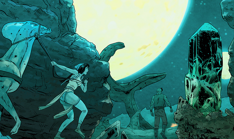 Cette histoire démarre assez brutalement, avec la séduction, la trahison et la déportation en quelques pages. Un départ surprenant, avec une ambiance très moyen-âgeuse, loin du titre annonciateur de science-fiction. Car cette histoire, en plus de rappeler le très bon album des aventures de Valérian, L’Empire des Mille Planètes, va se révéler très encourageante : Kohlen fait partie de la caste respectée des guerriers sur une planète lointaine. Trahie par une prêtresse, il est décasté, rejeté, emprisonné. Forcément, quand un guerrier est contrarié, il faut s’attendre à de l’action, et il y en aura, mais pas que. D’autres femmes croiseront sa route, d’autres batailles l’attendent. La vengeance, la liberté, les étoiles vont guider sa quête, finalement multiple. Le petit moins de ce scénario, c’est que tout s’enchaîne peut-être un peu trop vite. Les castes, qui apparaissaient comme au cœur du récit, laissent place à une bande pirate, à un personnage énigmatique, à trop de choses. C’est un choix justifié : il faut mettre le lecteur dans l’ambiance rapidement, quitte à développer davantage les personnages, les lieux et les mœurs dans les prochains tomes. Pour les amateurs de SF, cette bande-dessinée est une adaptation d’un roman de Julia Verlanger, La Croix des décastés.