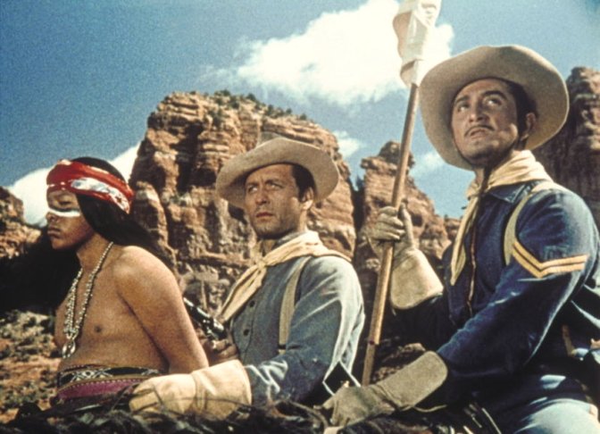 Notre avis : Le film s’ouvre sur une promesse d’exactitude historique, avec documents à l’appui ; certaines séquences, dont les discussions officielles à Washington, semblent appuyer cette piste, mais il est vite évident que ce n’est pas la vérité qui intéresse le cinéaste : on sent chez lui un amour du genre, dont il explore avec une certaine efficacité les topoï ; on y trouvera donc les chevauchées, les magnifiques décors naturels, la cavalerie avec sa noblesse et ses ridicules (mais l’humour est sans doute l’une des faiblesses du métrage), les combats individuels et collectifs et la galerie de personnages sans nuances. Rien donc de révolutionnaire, d’autant que la distribution comporte essentiellement des seconds couteaux au charisme mesuré.