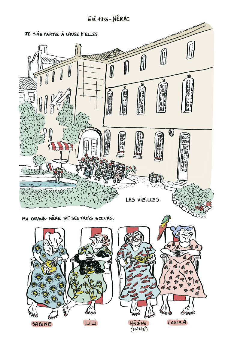 Pauline Aubry a grandi entourée de sa grand-mère et ses grandes-tantes dans un monde mi-réel / mi-idéaliste, mais 100% farfelu et au son des conversations estivales exotiques en langue espagnole, bercée de récit enjolivés et parfois approximatifs.