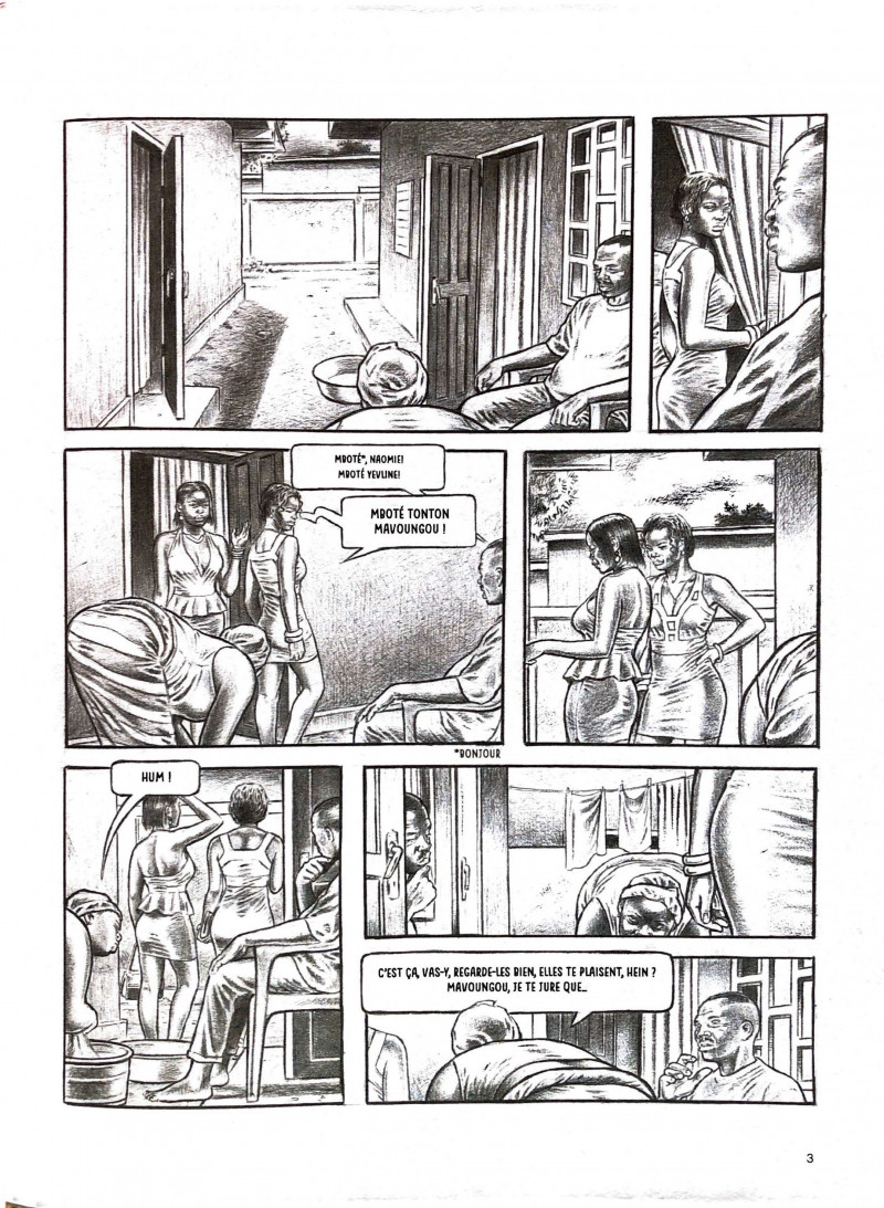 L’intrigue se déroule doucement, et le renversement de situation ne surprend pas beaucoup. Mais en-dehors de cette narration, il y a un regard précis sur la société de Pointe-Noire, ville du Congo, ses expatriés, ses locaux, des modes de vie qui s’opposent, fastes des riches et pauvreté des laissés de côté. Au hasard d’un personnage secondaire, quelques explications passent par un dialogue sur cette société. Choix que nous trouvons pas toujours forcément bien judicieux pour exposer des idées ou des données, mais devant le drame du quotidien relaté tout au long de cette BD, nous ne ferons pas la fine bouche.