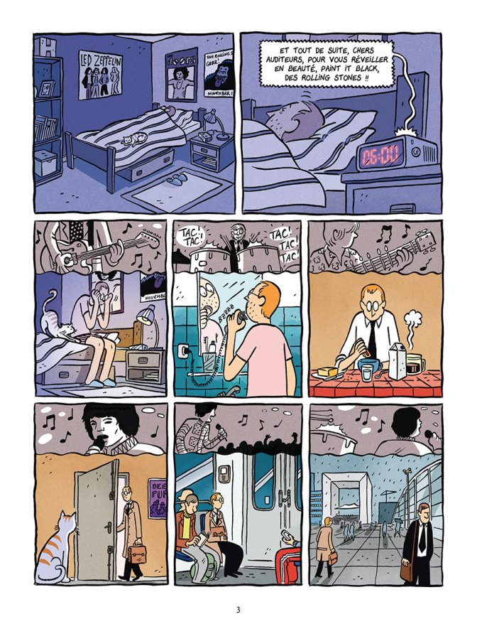 Cette simplicité se retrouve d’ailleurs dans le dessin. Des couleurs, des personnages, mais pas beaucoup de détails, un style épuré et qui convient, sans séduire. Le tout facilite l’identification, puisque hormis son prénom, Baudouin n’a pas vraiment de signe particulier. Il aime la musique, a eu un père peu affectueux, a une frère qui prend de la place, et peu de vie sociale. Beaucoup peuvent s’y retrouver, et son physique banal peut créer de la proximité, à défaut du charisme. C’est un peu le côté extraordinaire d’un héros purement ordinaire. Seule sa maladie vient apporter un élément inhabituel, mais elle passe assez curieusement au second plan rapidement. Les planches colorées de la vie sénégalaise font d’ailleurs assez vite oublier cette tumeur, et l’ambiance est contre toute attente optimiste, fraîche et belle.
