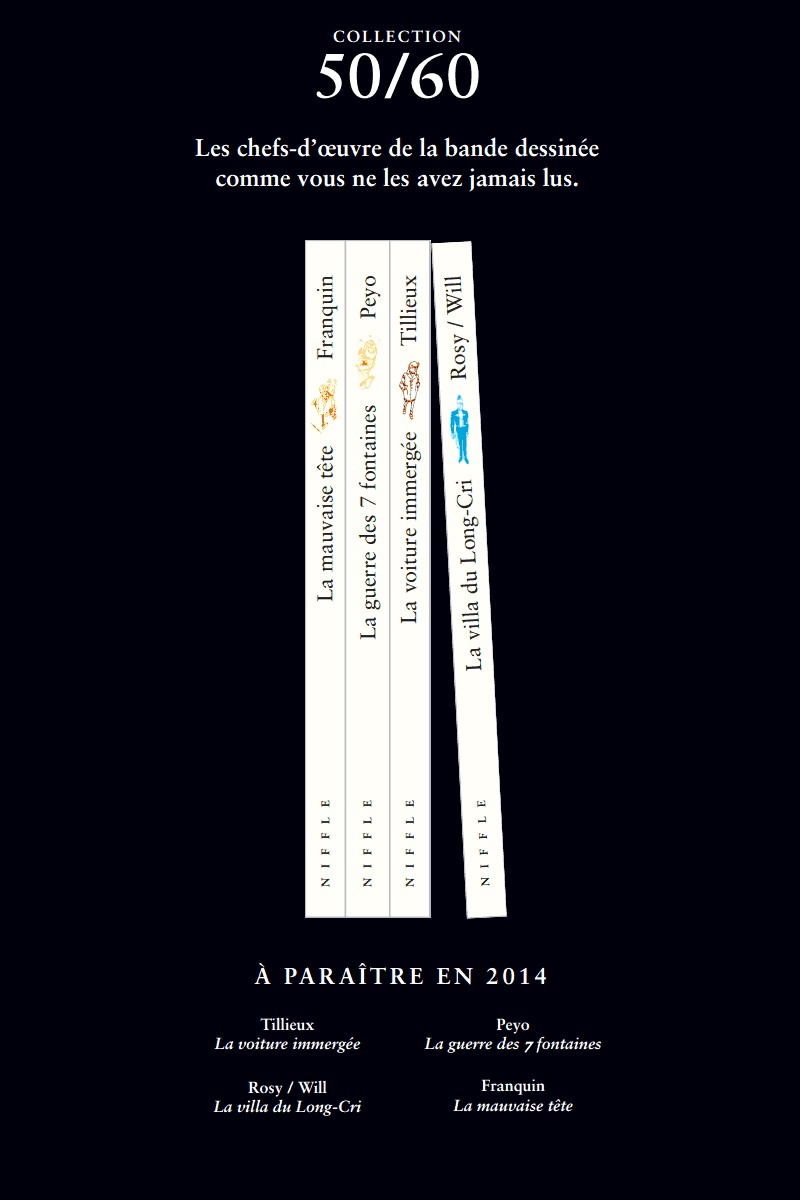 Cependant, malgré cette belle aventure, lorsque en 2008, Frédéric Niffle devient rédacteur en chef du journal Spirou, il dut mettre en veille ses éditions finalement rachetées par Dupuis en 2011 afin de permettre à son créateur de lancer de nouveaux projets. Cela se concrétise désormais par le lancement en mars 2014 de la nouvelle collection 50/60.