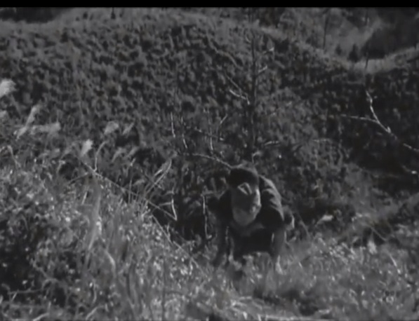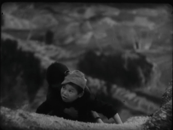 Shimizu évite soigneusement l’effet coup de théâtre et ne s’approche pas trop de l’enfant désemparé qui regarde de tous côtés et appelle à l’aide avant de s’éloigner en courant sur un sentier, devenant de plus en plus minuscule dans la profondeur du champ.