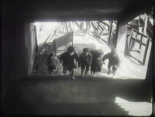 Et que dire de la séquence, véritablement d’anthologie, sans qu’elle ait pourtant rien de démonstratif, qui se déroule dans Hiroshima détruite ? Elle transforme une séparation douloureuse entre les enfants et celle qui était plus ou moins devenue pour eux une mère de substitution en une véritable partie de cache-cache, la jeune femme étant obligée de se dérober à leur regards en se dissimilant derrière les ruines pour éviter qu’ils ne fassent demi-tour, ce qui se produit à plusieurs reprises, la scène obéissant elle aussi à un principe de répétition tragicomique.