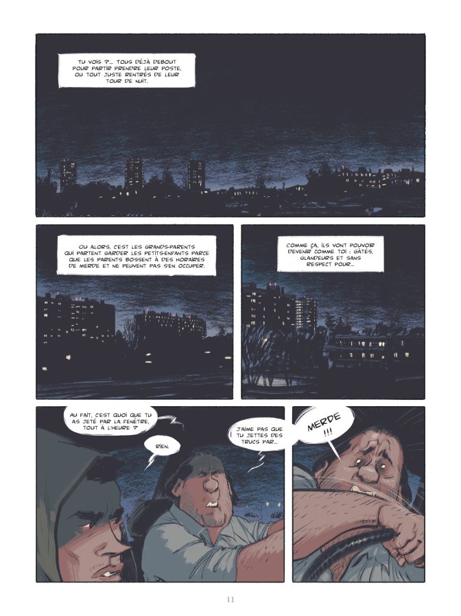 Critique : Au fil des pages de ce récit choral, les différents personnages apparaissent progressivement, se croisent, s’épaulent et/ou s’affrontent. Ils sont autant de points de vue permettant de saisir une société en crise ; ils apparaissent finalement comme différentes faces d’une même pièce. Lorsque ces personnages tiennent de l’archétype, c’est autant pour se servir de ces représentations que pour (s’)en jouer.