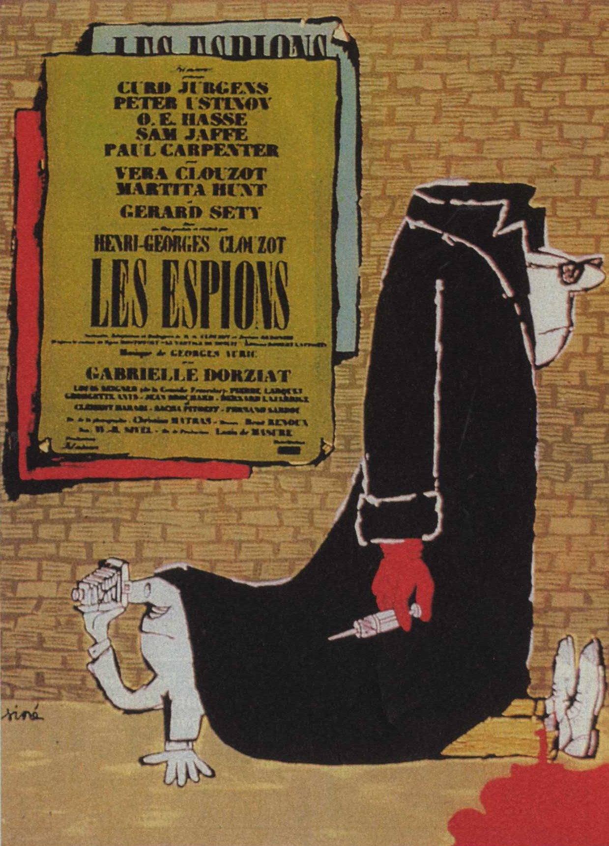 Si l’histoire est passionnante, pas aussi obscure qu’on l’a dit, elle joue surtout sur les apparences et les leurres : le personnage de Curd Jürgens n’est pas un scientifique, comme l’infirmière ou le garçon de café ne sont que des rôles. Pas de réalité, mais un ensemble de masques tristes, qui eux-mêmes ne savent pas pour qui ou pour quoi ils travaillent. Ils passent d’ailleurs leur temps à attendre, loin des images d’espions en danger, se connaissent tous et s’avèrent relativement inefficaces. Certes, il y a des morts, mais à une exception près, et c’est un suicide, toujours hors-champ, comme si là encore tout n’était que manipulation. Au fond, ce que décrit Clouzot, c’est un monde privé de sens, dans lequel des hommes font ce qu’ils doivent jusqu’au bout, sans idéal ni patriotisme. En quelque sorte des fonctionnaires (où l’on retrouve Kafka) besogneux qui ne voient pas au-delà du bout de leur nez. Des damnés peut-être, prisonniers de leur condition.