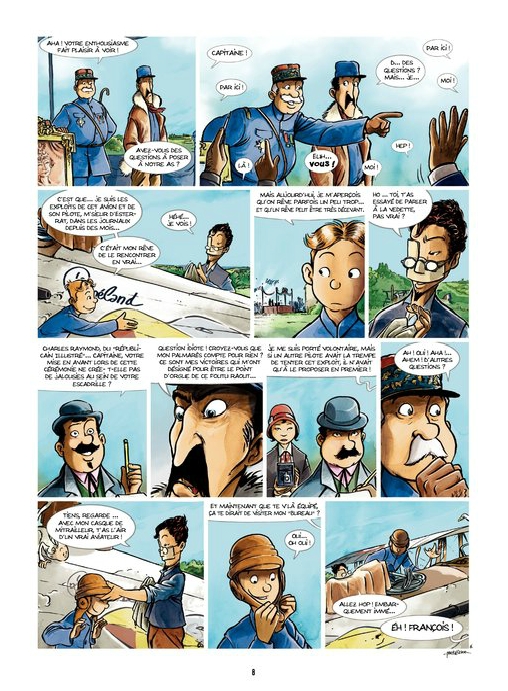 Marko ne se refuse pas non plus la possibilité de dessin pleine page pour rajouter un souffle à l’histoire. Le cadrage reste proche des personnages et on pourra apprécier le combat aérien, où l’on n’est jamais perdu, alors qu’une partie de l’action se déroule au sol avec Palette et Bourhis, tandis que l’autre se passe dans les airs, avec Bichette et Alexandre dans l’avion, et des allemands autour. Deux lieux, dont un totalement aérien et pourtant l’action reste toujours lisible. Derrière cette simplicité de lecture se cache sans doute beaucoup de travail des deux auteurs.