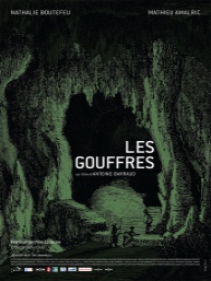 Notre avis : Après plusieurs courts métrages et portraits expérimentaux, Antoine Barraud propose avec Les Gouffres un long métrage, tout aussi expérimental. Un spéléologue, Georges Lebrun (Mathieu Almaric), appartenant à une équipe de scientifiques, vient explorer un gouffre, découvert depuis peu et situé quelque part dans la forêt montagneuse d’un lointain pays hispanophone. Sa femme France (Nathalie Boutefeu), chanteuse d’opéra, l’accompagne. Le couple se retrouve dans un hôtel immense, désert et assez improbable. Le début de ces Gouffres est prometteur avec une idée de départ séduisante – enfin, pas banale. On est vite plongé dans une atmosphère étrange : les éclairages sont inquiétants, les ambiances brumeuses, floues, la musique envoûtante. Son mari parti dans les profondeurs vertigineuses, France est soumise aux secousses telluriques et à la proximité du vide. Aucune communication possible avec les quelques personnes bizarroïdes qu’elle côtoie dans l’hôtel. La scène avec la femme de chambre Pearl est à cet égard éloquente et participe au climat qui relève alors du fantastique. France n’a pas de nouvelles de son époux. Qu’est-il allé faire dans ce gouffre ? Pourquoi ne revient-il pas comme prévu ? Elle essaye de se concentrer sur son prochain rôle : l’esclave Liu dans le Turandot de Puccini. En vain. France est confrontée à des phénomènes inexplicables qu’elle lie à ces mystérieux gouffres. Attente, angoisse, abandon, panique… France se retrouve au bord de la folie. Le suspense fonctionne et, jusqu’à ce moment du film, les situations sont crédibles, entre réalité et onirisme.