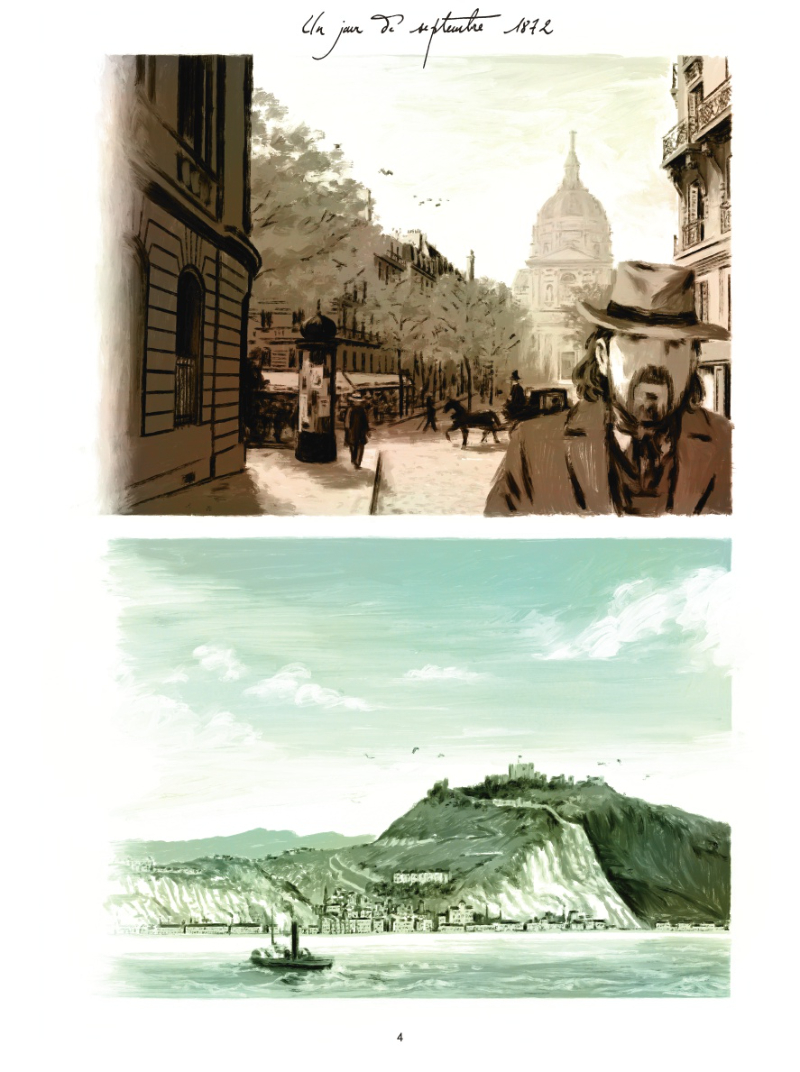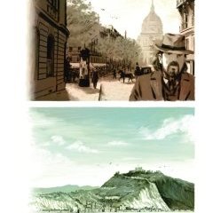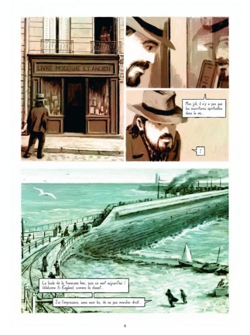 Dans ces quelques cent quarante pages, on a l’impression d’être entré dans le tableau Femme au Café, plus connu sous L’Absinthe, comme si Degas nous avait invité à entrer dans un Paris, un Bruxelles, un Londres tout embrumé de vapeurs vertes, où des pavés mal éclairés et des échoppes laissent échapper un fumet alcoolisé typique du siècle décrit. Dytar est parvenu en trois couleurs plutôt saumâtres à intégrer chacun de ses personnages dans un cloaque graphique qui lui permet de faire surgir leurs faiblesses, leur génie aussi, évidemment, entre vers sublimes et jalousies mesquines.