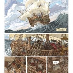 Aux côtés de ce scénariste de talent, le dessin de Guarnido fait merveille. Ambiance d’époque, avec une violence contrebalancée juste ce qu’il faut par des grimaces et des envolées qui ne sont pas sans rappeler les pages de Blacksad, comme un style qui s’imprègnerait désormais parfaitement dans un autre décor, qui conviendrait même pour une adaptation de la Controverse de Valladolid. Et cent-soixante pages aussi léchées, aussi garnies et copieuses que peuvent l’être un album de Guarnido, on se dit que l’on tient entre ses mains ni plus ni moins que l’œuvre d’une vie. Ce zénith graphique se met en effet au service d’un récit qui évoque habilement l’art pictural de Velázquez et l’Histoire des Indes nouvelles, dans toutes leurs splendeurs d’époque.
