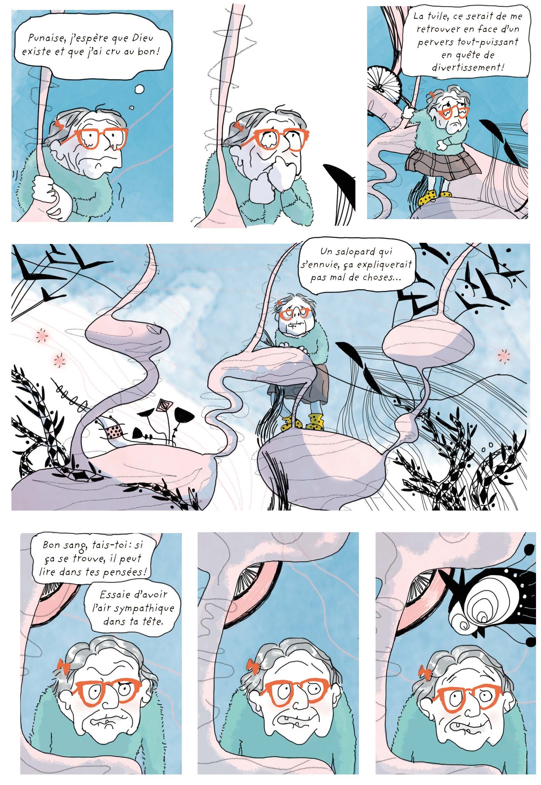 Alors en bonne mamie manipulatrice, Letigre sort ses griffes et invente une tactique : comme il débarque 159 000 âmes par jour dans ce lieu inattendu où elle s’est retrouvée parachutée, elle doit faire preuve d’imagination face à la concurrence pour ne pas être expulsée dans le Grand Rien Ad Vitam ou plutôt Ad Mortem !