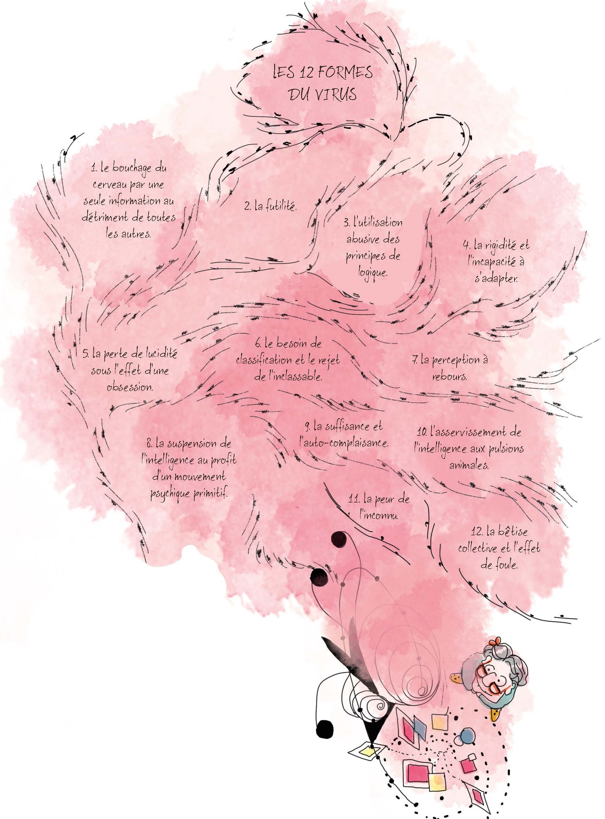 Elle déclare que la bêtise s’est emparée de la planète Terre - maladie extrêmement contagieuse - qu’elle-même n’a pas contractée - mais à laquelle bon nombre de morts seront soumis.
