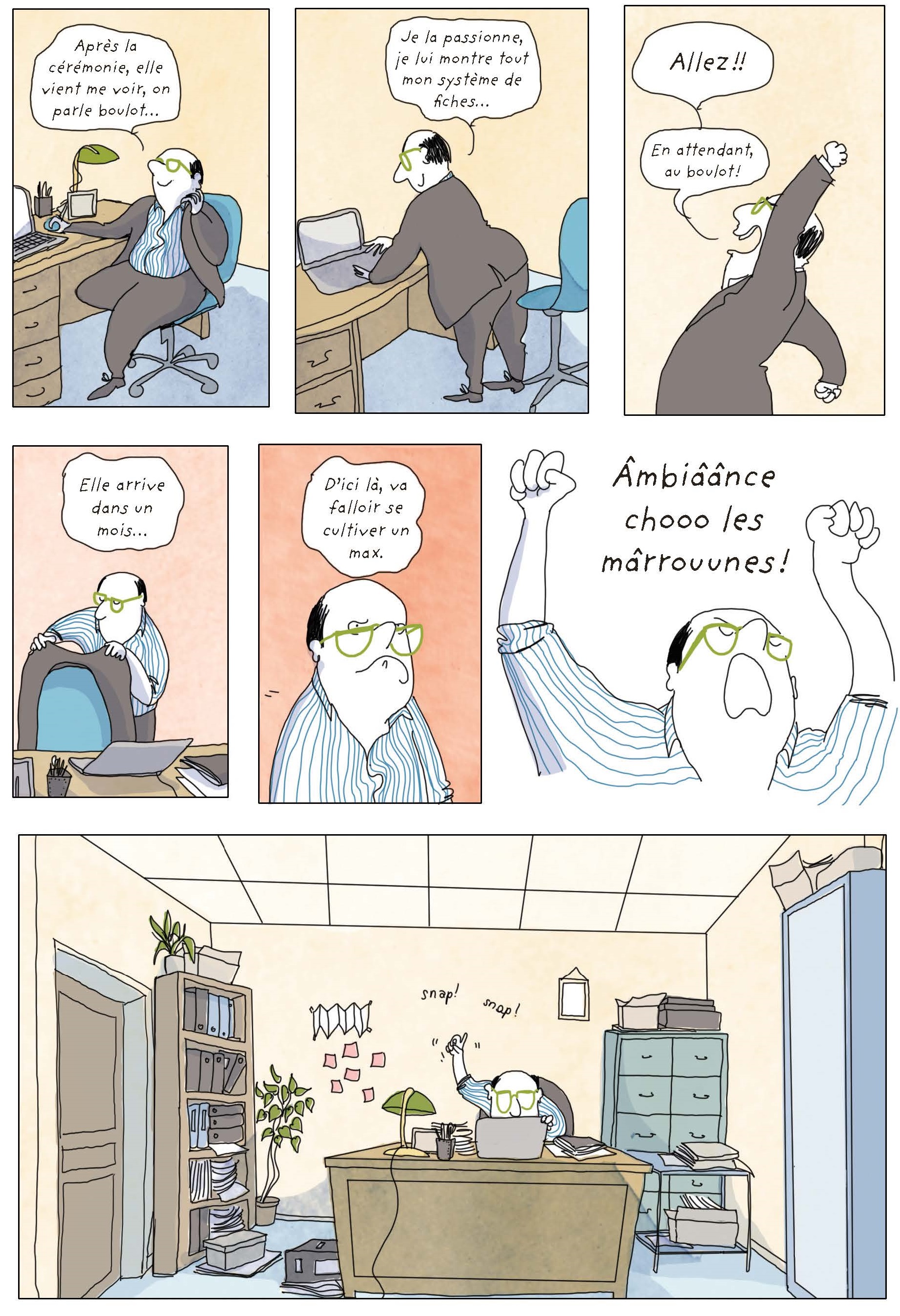 On débute par un petit tacle contre le monde politique et son administration imbécile et kafkaïenne avec un maire au look penaud très Hollandien…