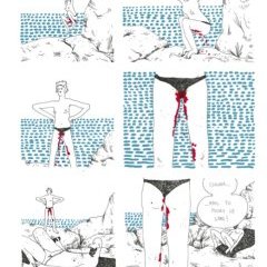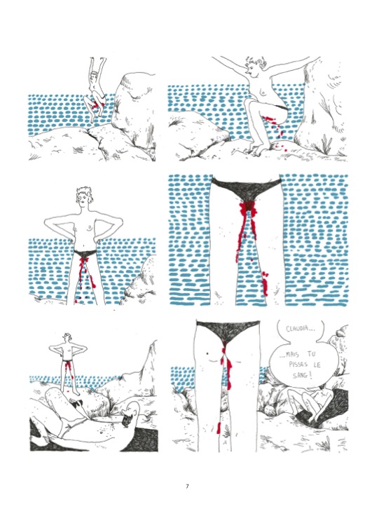 Mais la principale trouvaille narrative de Zuzu réside dans le physique de son héroïne : sous l’effet de ses émotions, Claudia se transforme. Sa peau devient blanche – son corps cesse donc d’être colorié – et il lui pousse des crocs, des pattes, des griffes, une queue ainsi que des ailes. Cette transformation la fait souffrir, et elle s’efforce de réguler ses émotions, ce qui s’avère particulièrement difficile, tant la jeune femme s’avère impulsive et sauvage. Ce procédé narratif confère une touche de fantastique au récit et témoigne d’une vraie maîtrise des codes de la bande dessinée. Le sentiment de maîtrise de la narration dont fait preuve l’autrice est renforcé par ses choix de découpage : les planches de dialogue s’étirent sur plusieurs pages, laissant un place importante aux blancs, aux regards, à la gêne qui s’installe.