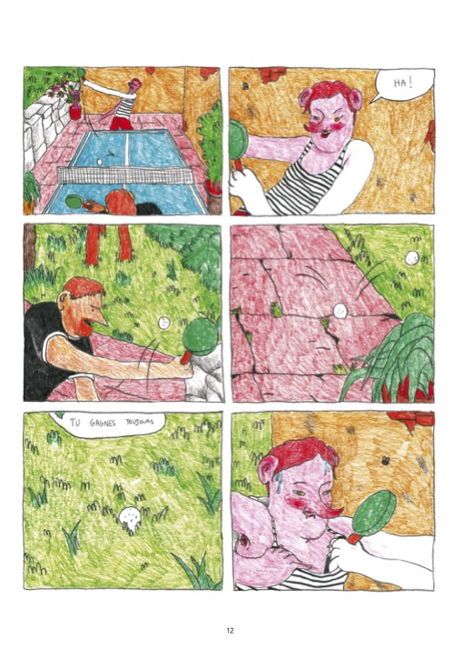 Critique : Après le remarqué Cheese qui portait sur l’amitié, Zuzu poursuit l’exploration des rapports humains avec Les jours heureux. Dans cet ambitieux roman graphique de plus de 450 pages, Zuzu dissèque une relation amoureuse au prisme d’une personne émotionnellement fragile. Sans perdre son sens de la poésie, qui se matérialise à la fois dans les dessins et les dialogues, Zuzu passe cette fois à la couleur, qui repose sur l’utilisation de crayons et de pastels. Ce choix tranché confère aux planches une dimension faussement enfantine. En revanche, la couleur possède une vraie dimension narrative, tant les choix de la dessinatrice – qui s’affranchit des conventions réalistes – éclairent les sentiments de ses personnages.