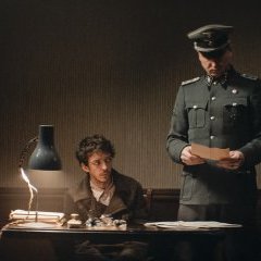 Le premier film de Vadim Perelman La maison des sables et des brumes parlait déjà de la mécanique du mensonge comme moteur de destinée à travers deux personnages dont un colonel iranien. La duperie qui s’installe entre ce capitaine Koch et ce jeune Gilles démontre les tourments de la manipulation dans laquelle les deux protagonistes s’installent, outre que le militaire allemand, in fine, a le pouvoir de décider de la vie et de la mort de ses déportés. Il y a pourtant quelque chose d’excessif ou de trop romantique dans la mise en scène, qui brouille les pistes du récit. Les scènes se succèdent parfois avec des opportunités narratives, qui ont tendance à faire sombrer le film dans une facilité assez déconcertante. Si la relation entre les deux personnages principaux évolue vers une forme d’amitié troublante, on a du mal à croire qu’un nazi, attaché à un camp, qui assassine sans émoi des milliers de femmes et d’hommes, se laisse aller à une tendresse non dissimulée pour un jeune homme dont il sait au fond de lui qu’il ne cesse de mentir. Le travail sur les lumières, la couleur souvent sombre de l’image, le dépouillement des décors et même les costumes renforcent le caractère romanesque du film, là où un tel sujet aurait dû demeurer distant et objectif.