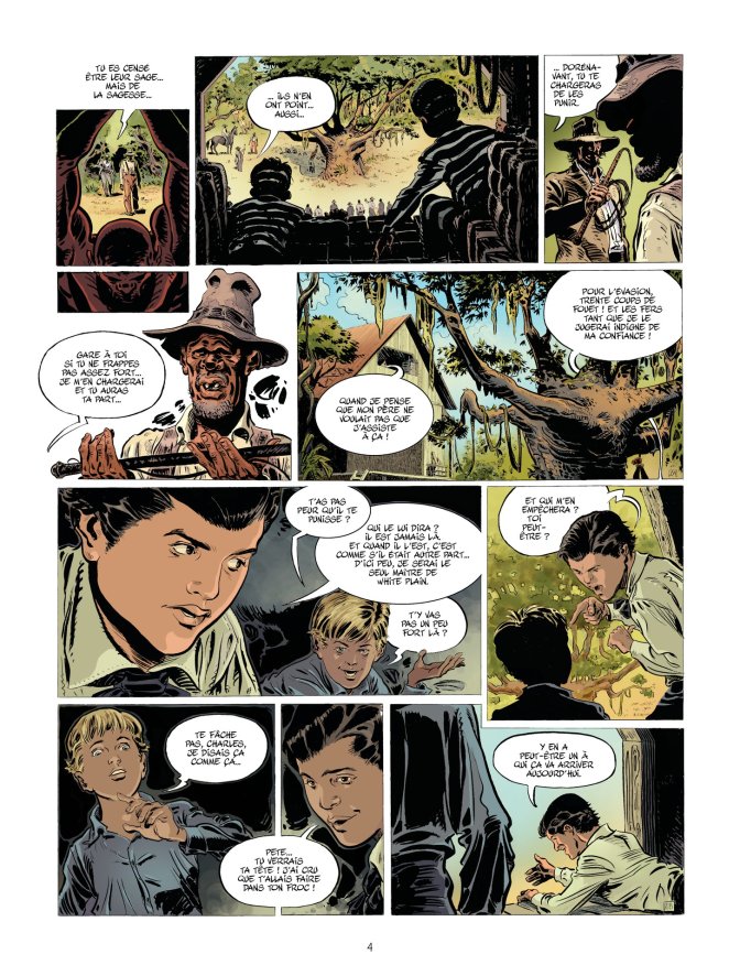 L’ambiance poisseuse des marais du sud, des alligators, la tension entre maître et esclave sont parfaitement rendus tout au long de cette BD. Les caractères des personnages sont posés d’emblée et nous suivons leur évolution, marquée par cette sorte de malédiction non dite qui risque de mener cette famille à sa perte. La mort rôde à White Plain et pas forcément là où on l’attend.