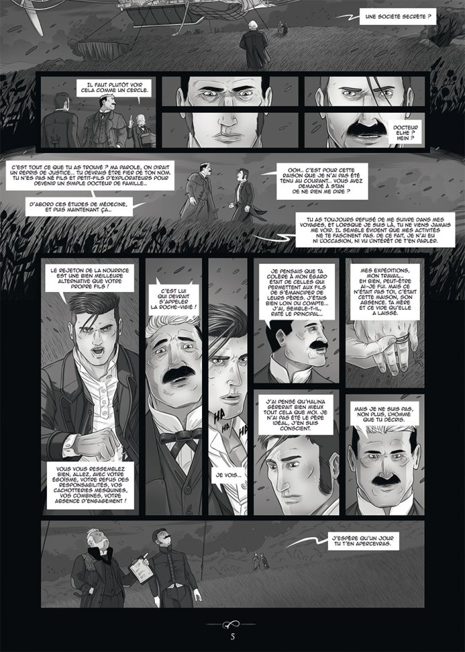 Après l’extérieur et ses embûches, c’est désormais vers l’intérieur que se tourne ce second album, qui aborde les sentiments des deux protagonistes, avec des histoires de pères, de mères, d’amour et d’amitié mêlées et peut-être trop enchevêtrées. Le premier amenait du mystère, de la tension, ce second apporte de l’action mortifère et une vision de choses assez repoussante. Il ne s’agit plus de cacher, de dissimuler l’horrible, mais bien de le mettre au jour, quitte à ce que ce soit dans une alcôve sombre, une serre nocturne ou une forêt noire. Paradoxalement, les dialogues emplissent les pages, et il faut faire attention de ne rien louper, car certaines cases sont complexes, certaines pages ont une construction ciselée, comme le thème proposé, et le lecteur doit produire une lecture attentive pour déchiffrer non pas l’intrigue, mais bien les sous-entendus qu’elle contient.