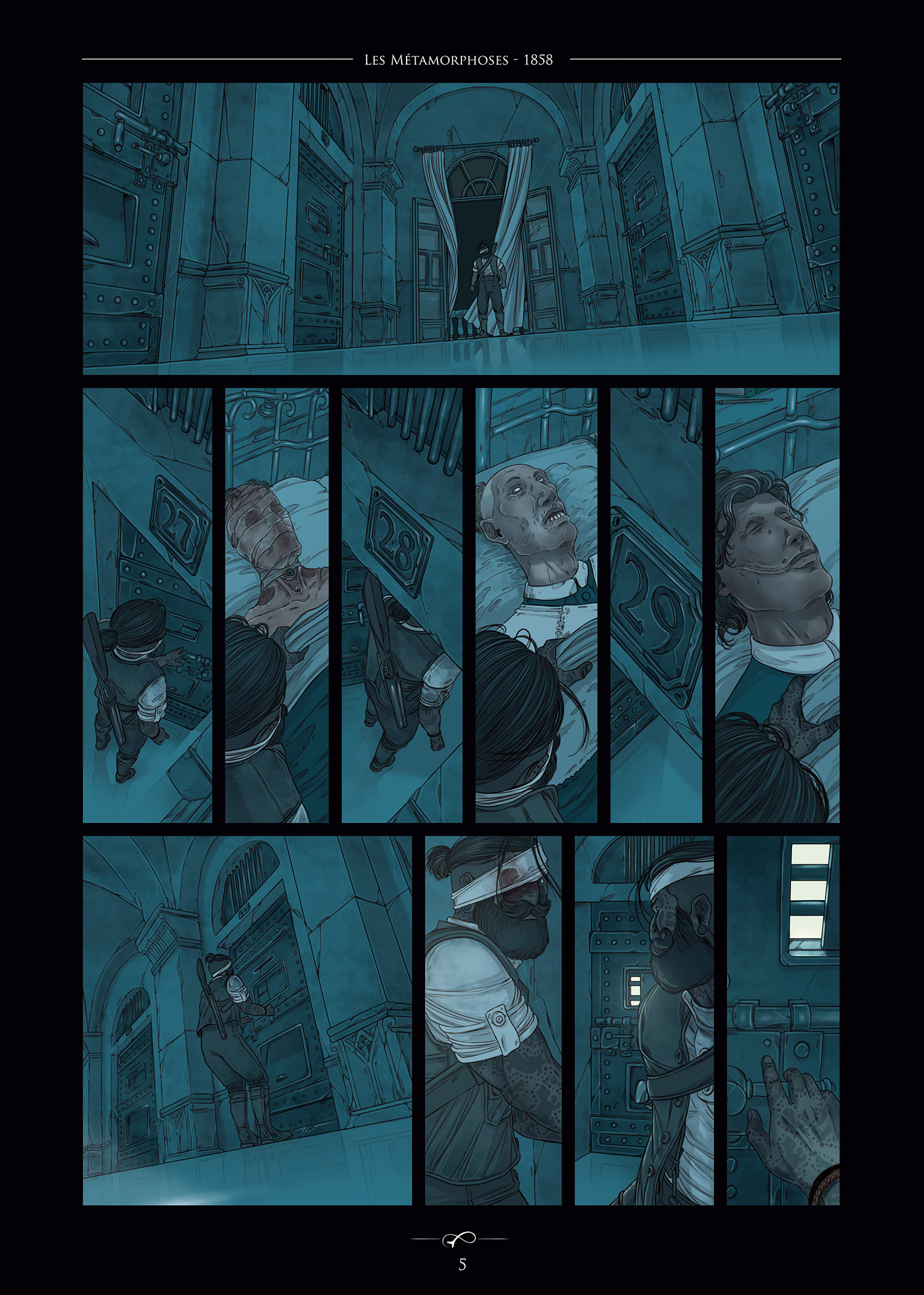 Critique : Dans une tourmente de machine, de sang et de larmes, les deux amis vont avoir droit à un final à la hauteur des deux tomes précédents. Cette enquête dans plusieurs villes européennes, à une époque victorienne uchronique, steampunkesque et surtout glaçante d’horreur, ferait passer Poe et Lovecraft pour des copieurs. Du début à la fin, alors que tout s’emballe et que les cartes se jouent, cette série fait ressentir une saveur âcre, parfois écœurante, qui attire l’œil et le cerveau du lecteur comme des lucilies bouchères... En effet, les créatures, entre nécroses et exosquelettes, et le sang, abondant dans cette série, captivent autant qu’ils répugnent. Sans donner totalement dans le gore, ou plutôt en le poétisant à la manière de la "Charogne" de Baudelaire, Métamorphoses 1858 s’impose comme une série puissamment symboliste.