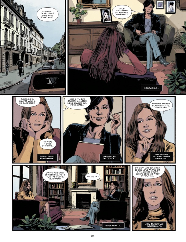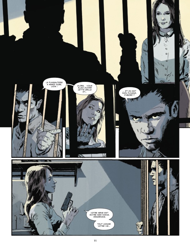 L’intérêt du roman réside dans l’inversion des rôles – dans la grande majorité des cas, ce sont les femmes qui sont victimes de la violence masculine – et dans le doute qui s’insinue en nous : la vengeance de Lydia est-elle légitime ? En bon thriller, le récit nous tient en haline jusqu’à la dernière page, et l’ensemble tient ses promesses. En ce sens, l’adaptation dessinée par Xavier Delaporte, qui opte pour un dessin réaliste avec un jeu sur les masses de noir que l’on voit dès la couverture, est réussie. Le découpage s’avère très cinématographique – et d’ailleurs, une adaptation du roman est prévue au cinéma – avec une série de champs/contre-champs, avec des dialogues ciselés.