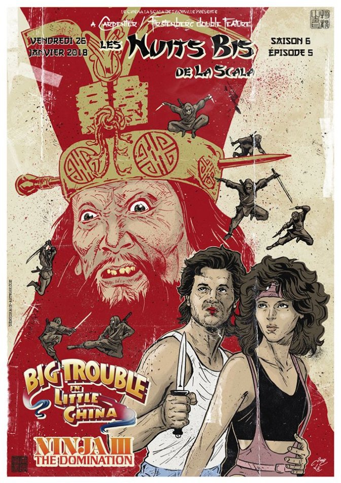 Vendredi 26 janvier 2018 à 20h30, venez ingurgiter un grand moment de cinéma bis au cinéma La Scala de Thionville avec au programme Kurt Russell en mode Indiana Jones chez John Carpenter suivi d’un joyeux nanar bardé de ninjas possédés made in Cannon.