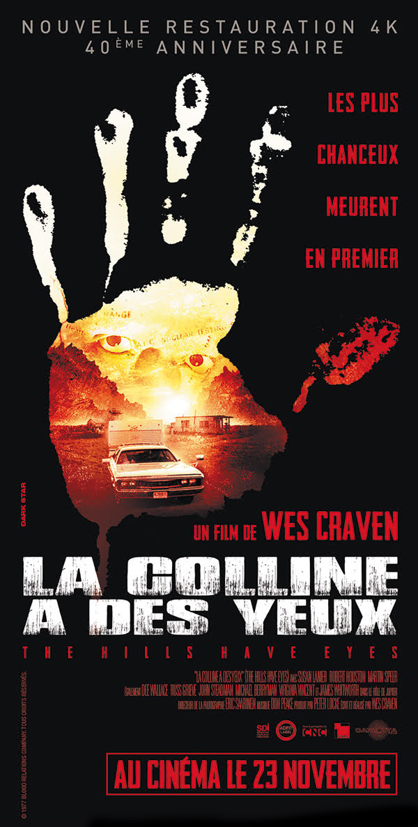 En partance pour la Californie, une famille se retrouve accidentellement au beau milieu d’une zone d’essais de l’aviation américaine. Contraints de quitter leur véhicule, ils se retrouvent pourchassés par une bande de dégénérés. Habitué des Nuits Bis, Wes Craven (Scream, les griffes de la nuit, l’emprise des ténèbres…) revient dans votre salle préférée avec une copie 4K d’un des plus célèbres survival de l’histoire du 7ème art : The Hills have eyes. Depuis 40 ans, cette lutte féroce entre deux familles pour le moins différentes (l’une a épousé sans retenu les préceptes de l’american way of life, l’autre est cannibale) continue d’exercer un pouvoir de fascination sur les fans de cinéma de genre. Bien sûr, la brutalité du second film du papa de Freddy Krueger ne peut plus rivaliser d’un point de vue graphique avec nos standards actuels. Pour autant, utiliser le cadavre de sa génitrice pour tendre un piège à son ennemi reste l’une des idées les plus excessives vue sur un écran de cinéma ! Affreusement cheap mais diablement choquant.