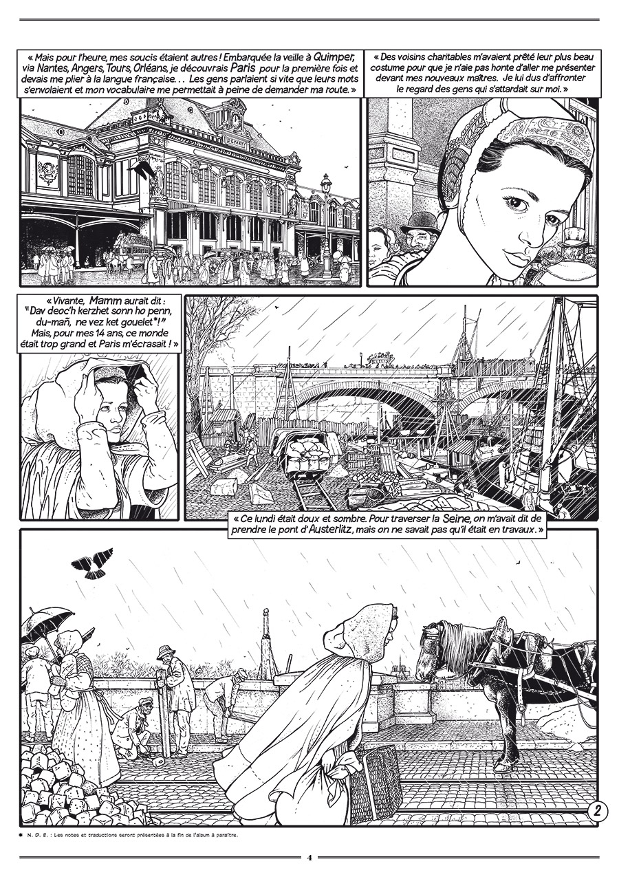 Même en noir et blanc et sur du papier plié, le talent de Bourgeon continue d’impressionner. Celui qui moule des plâtres de ses personnages pour mieux les représenter ensuite sur ses planches n’a rien perdu de son style, bien au contraire. Faire revivre le Paris de cette fin de siècle est une aventure enthousiasmante, tout comme la Louisiane avait été un pari osé et réussi lors du cycle précédent. Vivement la couleur, car chez Bourgeon, elle achève d’unifier l’œuvre, chaque album et même série possédant ses tons propres.