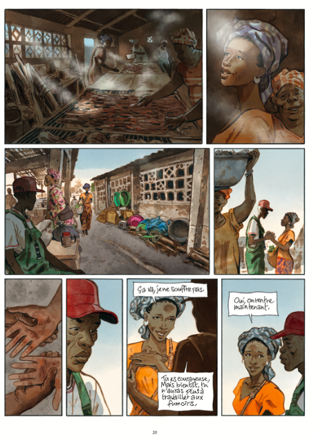 Si le récit est une fiction avec de réels enjeux narratifs, l’album se fonde sur le travail d’observation et de documentation des auteurs, auquel on sait gré de ne pas verser dans la simplification et le manichéisme. S’il est engagé et dénonce les nuisances des grandes firmes en Afrique, le récit se distingue avant tout par son réalisme.