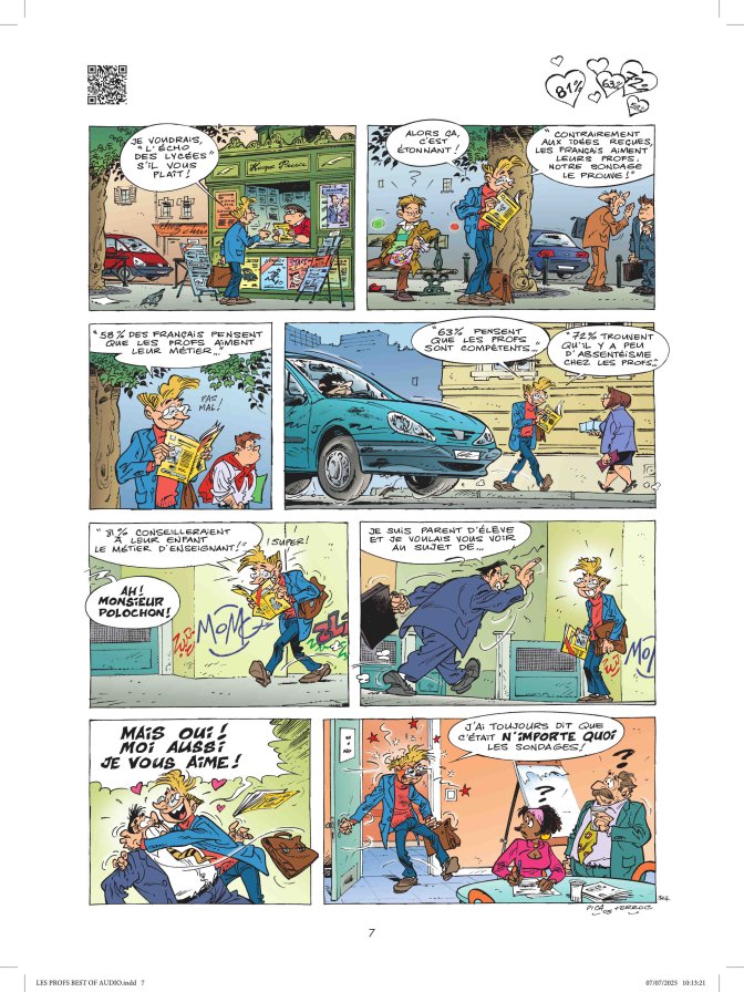 Les Profs à lirécouter est une compilation d’anciens gags qui ajoute l’audio à la case fixe, pour apporter un nouveau regard (ou plutôt une nouvelle écoute) sur cette série.
