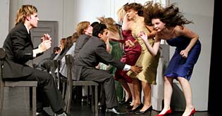 C’est d’ailleurs l’un des seuls (minuscules) reproches qu’on pourrait faire au film, ces quatre-vingt dix petites minutes de bobine : c’est bien simple, on en aurait bien repris pour une demi-heure. Étrangement, les apparitions de Pina Bausch se font rares, et tirent justement une grande force de leur rareté : à ces répétitions qu’elle ne dirige pas, elle n’assiste qu’exceptionnellement, ce qui a le don d’impressionner les gamins à chaque fois qu’elle pointe le bout de son nez. Mais si la chorégraphe est absente de l’écran, du moins en début de métrage (elle se montre plus à mesure que la ’’première’’ approche), sa présence se fait constamment sentir : à travers les scènes de Kontakhtof (qui renvoient à des obsessions et à des anecdotes très personnelles), à travers cette jeunesse à qui elle transmet son aura (les adolescents lui rappellent ses propres premiers pas sur les planches), à travers ses deux collaboratrices qui se donnent entièrement à ce projet, c’est bel et bien un portrait de l’artiste qui se dessine ici, en creux.