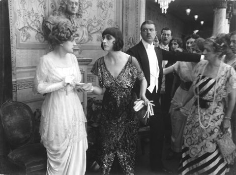 Dans l’acte 3, l’action se recentre autour d’Asta Nielsen, qui jusque là était restée relativement en retrait, se contentant de jouer avec une nonchalance feinte et un parfait naturel son rôle de coquette inconséquente. Lorsqu’elle reçoit le télégramme de rupture de son amant, la caméra la filme en plan rapproché - à la taille - et on voit son expression passer de la joie à l’effarement. Dès lors tout s’organisera autour d’elle, en particulier une scène de bal au grand hôtel magnifiquement chorégraphiée et jouant sur l’opposition entre l’avant-plan fixe et l’arrière-plan en mouvement. Les plans clés seront filmés face à un grand miroir. Le procédé permettant d’isoler de face l’actrice inquiète ou l’escroc qui va cacher les perles dans le bouquet de roses blanches posées derrière son dos. Derrière eux dans la glace, l’agitation du bal. Un véritable suspense s’installe autour de ce bouquet de roses, jeté par la fenêtre, rapporté, secoué maintes fois et qui va finalement révéler son secret, compromettant sérieusement l’héroïne avant un retournement final inespéré.