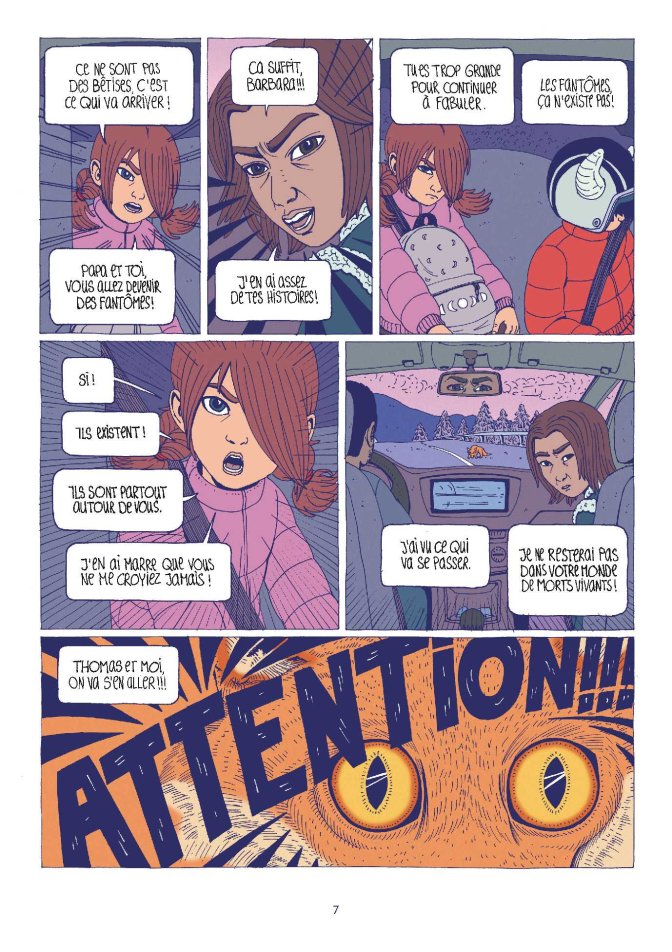 Cette tension dramatique, qui n’est pas seulement provoquée par la disparition de la grande soeur, celle qui doit être retrouvée, mais aussi par les disputes et rivalités entre les orphelins qui veulent se retrouver, affleure aussi dans le dessin. Le style renvoie clairement à un album jeunesse, mais le format, le nombre de pages, certains plans et choix le font basculer dans ce qui pourrait être un roman graphique de l’enfance, de son parcours, de ses difficultés, de ses écueils, à l’instar de grandes autobiographies américaines. Toutefois, la quête initiatique reste l’élément central, et les personnages secondaires, les compagnons d’infortune, de prendre davantage d’épaisseur, à mesure que les prédictions du héros semblent se réaliser. Avec le final onirique haletant, le dessin ne marque pas le pas, au contraire il devient d’un sérieux pétri de suspense, et donne clairement envie de lire le tome 2.