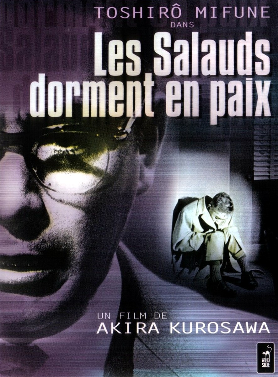 Le film : Première coproduction de Kurosawa, variation contemporaine autour de Hamlet, tragédie noire aux accents funestes, ample évocation de la corruption au Japon, Les salauds dorment en paix est aussi une preuve éclatante du génie du cinéaste. Il n’est que de prendre la première séquence, mariage sombre pendant lequel s’expriment la gêne des participants, ses cadrages impeccables, sa gestion de l’espace, ses focalisations multiples, pour comprendre ce que peut être le cinéma. Cette séquence inspira paraît-il celle qui ouvre Le Parrain. Même si la suite présente quelques baisses de régimes, on reste frappé par la constante maîtrise et l’intelligence visuelle du cinéaste.