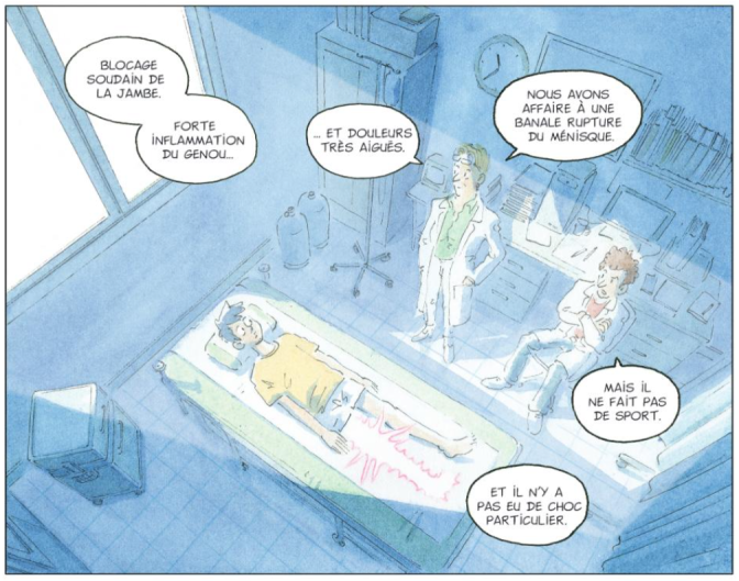 Résumé : Dans ce roman graphique autobiographique, Sébastien Pons revient sur un moment bascule de sa vie : alors qu’il doit partir s’installer au Japon avec sa petite amie, une douleur inconnue au niveau du genou le force à s’immobiliser, avec une convalescence compliquée...