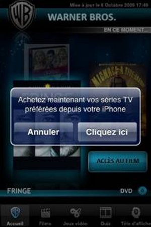 Le 22 octobre, Warner lance une nouvelle application Iphone pour pouvoir télécharger les séries de leur catalogue. Gossip Girl, Fringe, Les Frères Scott, Nip/Tuck, Friends, Chuck, Urgences, Smallville, FBI, Pushing Daisies, The Mentalist, Eleventh Hour, Supernatural...