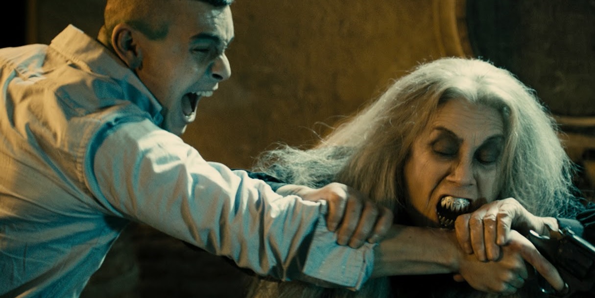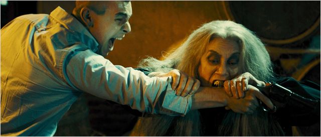 Planqué derrière ses références (Häxan, Une nuit en enfer pour le côté road-trip vers le chaos, La maison des 1000 morts et même – involontairement certainement – la famille Addams) - ou un langage qu’il avait jusqu’ici toujours su réemployer en gardant l’accent ibérique - le cancre de l’Eglise plaque sur ces clichés moteurs un argument bisseux qui aurait tout à fait pu assouvir nos envies de défoulement imbécile si nous n’étions pas devenu un petit plus exigeant – les grands films passant - sur le contenu des offrandes d’Alex. Du mariage à la religion d’état, de la misogynie ordinaire au féminisme sectaire, de la bêtise masculine à l’hystérie romantique de ces dames, tout y passe ; le film tangue sec pour arroser ses cibles, et finit par se retourner dans les vagues qu’il crée. Grosse farce à l’humour gris clair, ultra-répétitif sur la forme (le contraste entre discussion anodine et gravité de la situation répété 45 fois) et schématique sur le fond, faussement subversif (parce que centré sur une perpétuelle inversion des valeurs, un procédé qui a largement fait son temps), Les Sorcières de Zugarramurdi porte le deuil de la folie véritable de son géniteur, incapable, qui plus est, de convoquer les visions malades qui faisaient le sel plastique de ses salves précédentes. Hormis un pauvre type fripé et reclus sous les commodités d’un bar surnaturel, et l’ogresse-mère de toutes les sorcières/chiennes de garde, on espère de la vision ou de l’envolée, mais on tombe sur une inspiration en parapente, destinée à se crasher, et condamnée à braquer le style des autres.
