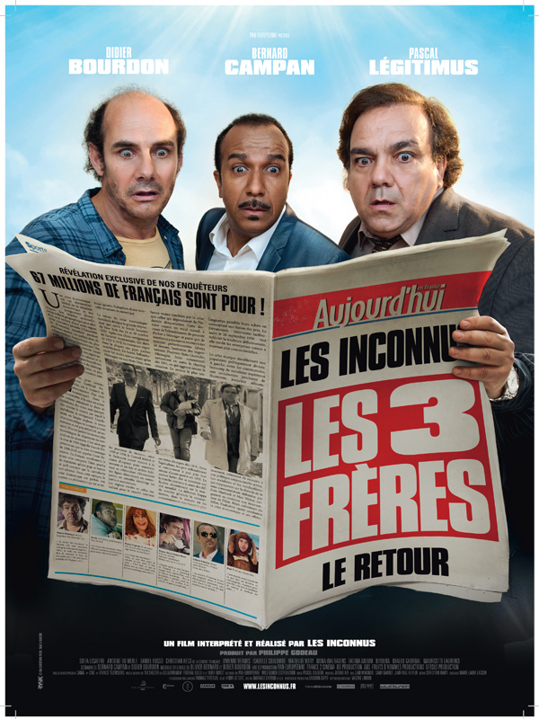 Et voici l’affiche définitive de la suite tant attendue du triomphe des Inconnus, Les trois frères le retour. Un petit air de déjà-vu pour une prise de risque minimale.