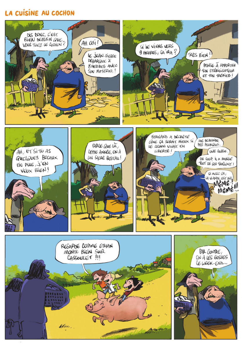 Guillaume Bouzard s’inspire de sa jeunesse pour écrire et dessiner cette BD. Un peu d’humour noir pour faire passer le décalage des générations et celui entre ville et campagne.