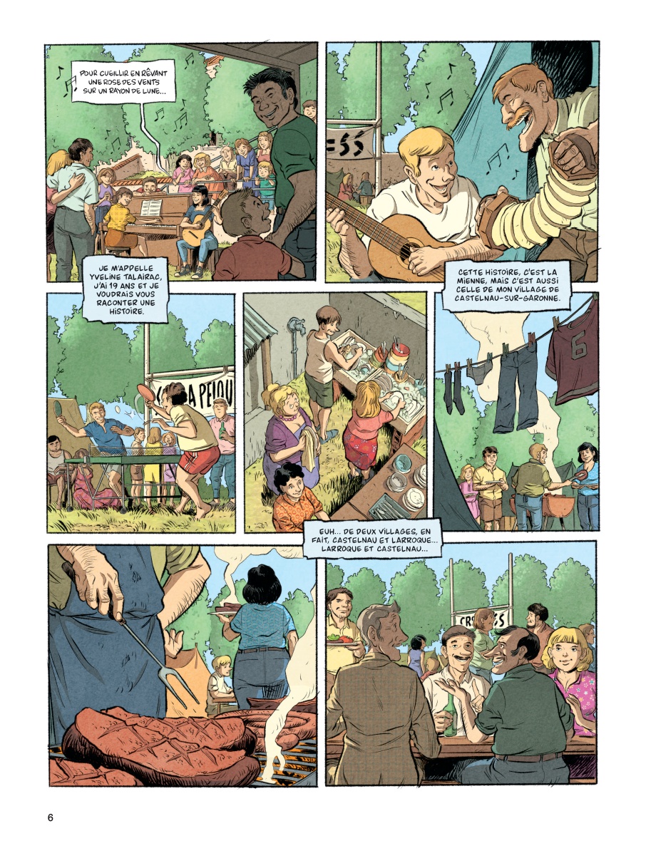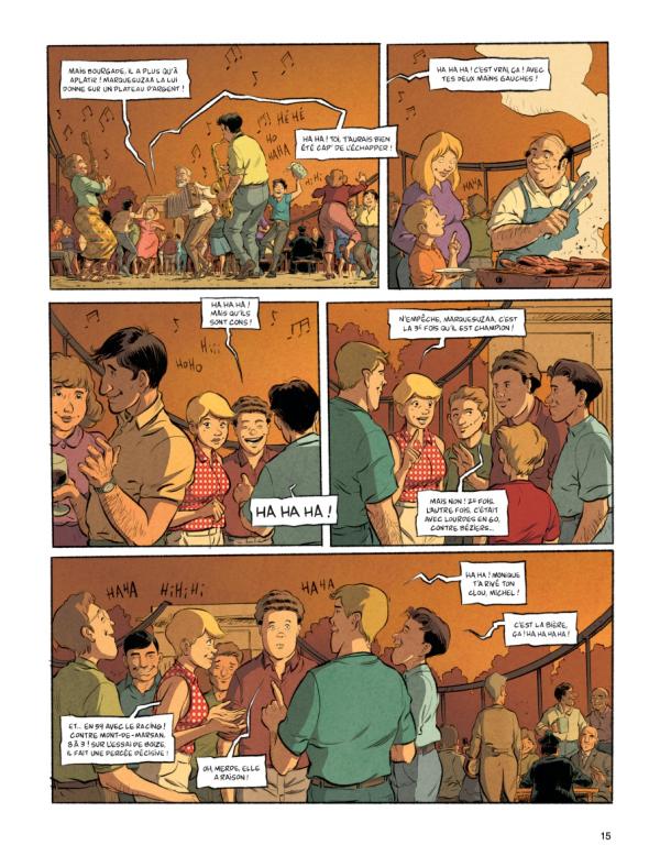 Critique : Il est de ces œuvres qui ne payent pas de mine au premier abord, où l’on se dit que le sujet n’est pas de nature à faire rêver, où un parfum trop passéiste ou trop rural peut faire renacler le citadin, ou plutôt le mondain habitué aux frasques de héros parisiens, ce que Regain de Giono o La Terre de Zola ont pu dégager, avant que l’on ne se rende compte de leur force. Les Vents Ovales sont de cet acabit, avec ce petit synopsis de coups de pieds et de passes en arrière qui vont de pair avec une certaine idée de la France et de ses villages des années 60, une idée qui va vite voler en éclat dans ce premier tome où le rugby tient lieu d’arrière-plan important mais finalement assez peu vécu (la célébration du titre de Montauban dans le début s’impose bien plus qu’un match local, qui ne sera jamais montré). Ce sont les personnages, hommes et femmes, même si dans ce premier tome Yveline a évidemment une importance un poil plus explicite, qui forment l’intérêt de cette œuvre, dans un recoin de France où l’on trouve l’usine, le curé, le père de famille, l’instituteur, la colo, l’étudiante qui ont chacun des envies et des idées, et où le débat s’installe peu à peu car la société est justement en train de changer.