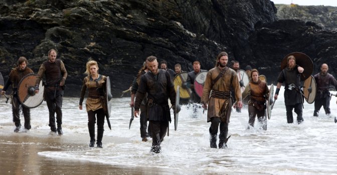 De Spartacus à Game of thrones, les séries vaillantes, antiques ou moyenâgeuses, enfilées dans des costumes viriles, où conspirations et affrontements musclés constituent le gros des trames, s’épanouissent sur les chaînes de télé. Vikings, déjà décliné en 2 saisons, et diffusé en France sur W9 depuis 2014, après son passage sur Canal,+, propose son lot d’émotions fortes dans la barbarie, des dialogues et des joutes sexuelles crus, des complicités viriles où la traîtrise vient toujours complexifier les enjeux dramatiques. Entre le maintien du pouvoir sur la terre scandinave, sujette aux plans fomentés pour renverser le pouvoir, et l’invasion des terres lointaines, alors que le protagoniste central, Ragnar Lothbrock, découvre le moyen de prendre le large pour partir conquérir des territoires nouveaux (les côtes britanniques, en l’occurrence), il est plus question d’intrigues pluriel que d’une intrigue. Et surtout il est ici question des fondations du mythe belliqueux du Viking voyageur et destructeur.