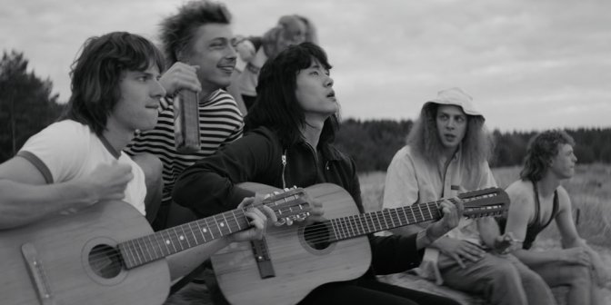 Lorsque le film s’ouvre, la carrière du groupe est déjà bien établie, avec une séquence en plein concert devant un public qui apparaît lui-même sous l’œil attentif de représentants de l’Etat. Cette entrée permet de contourner les schémas habituels du biopic musical -même si, sur la forme, l’usage du noir et blanc n’est pas sans rappeler Control d’Anton Corbijn. Mais là où nos habitudes de spectateurs nous faisaient attendre une construction basée sur le parcours de Viktor, le leader du groupe, le réalisateur Kirill Serebrennikov emprunte une autre direction. S’écartant de la narration, dans un premier temps, il nous plonge dans l’insouciance d’une jeunesse soviétique fascinée par la musique rock occidentale.