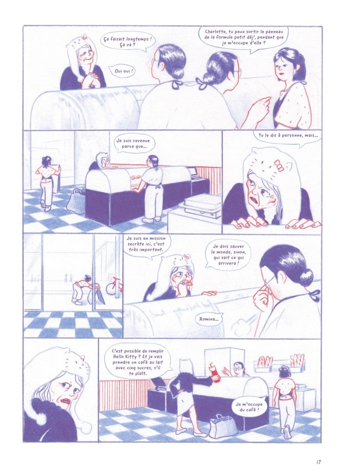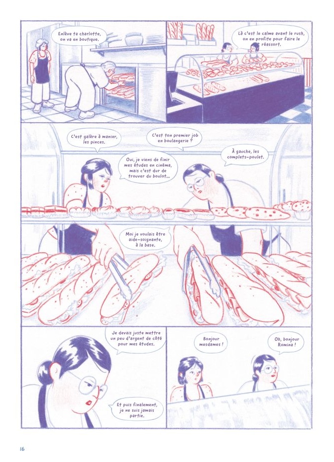 Chose rare, quasiment tous les personnages sont féminins. Si Charlotte est le fil conducteur, certaines de ses collègues sont vues également dans leur vie privée. Le récit permet donc de s’attacher ponctuellement à d’autres points de vue que celui de la nouvelle employée.