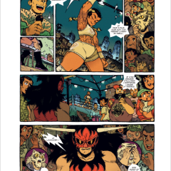 Loba Loca est un magnifique voyage initiatique durant lequel on voit Guada se transformer en une femme forte et badass. Présentée dans les premières pages comme une adolescente faisant tout pour ressembler aux autres, elle s’émancipe peu à peu pour faire finalement ses propres choix. Car si l’histoire commence à la manière d’un Rocky, où la jeune débutante entraînée par son vieux coach, combat les stars une à une, Loba Loca parvient à faire évoluer l’intrigue vers des sujets plus profonds. En effet, de nombreux thèmes sont abordés avec beaucoup de justesse, que ce soit le harcèlement, la maladie ou la notion d’héritage familial. L’humour est également très présent et l’opposition des deux générations, celle de Guada et celle de Tigre, en est une cause. On s’attache d’ailleurs énormément à ce duo atypique qui va évoluer de plus en plus en osmose au fil du récit. Comme tout spin-off, il sera plus facile de comprendre le fond de l’histoire si on a eu la chance de lire Puta Madre et les connaisseurs de Mutafukaz apprécieront le petit clin d’œil des auteurs.