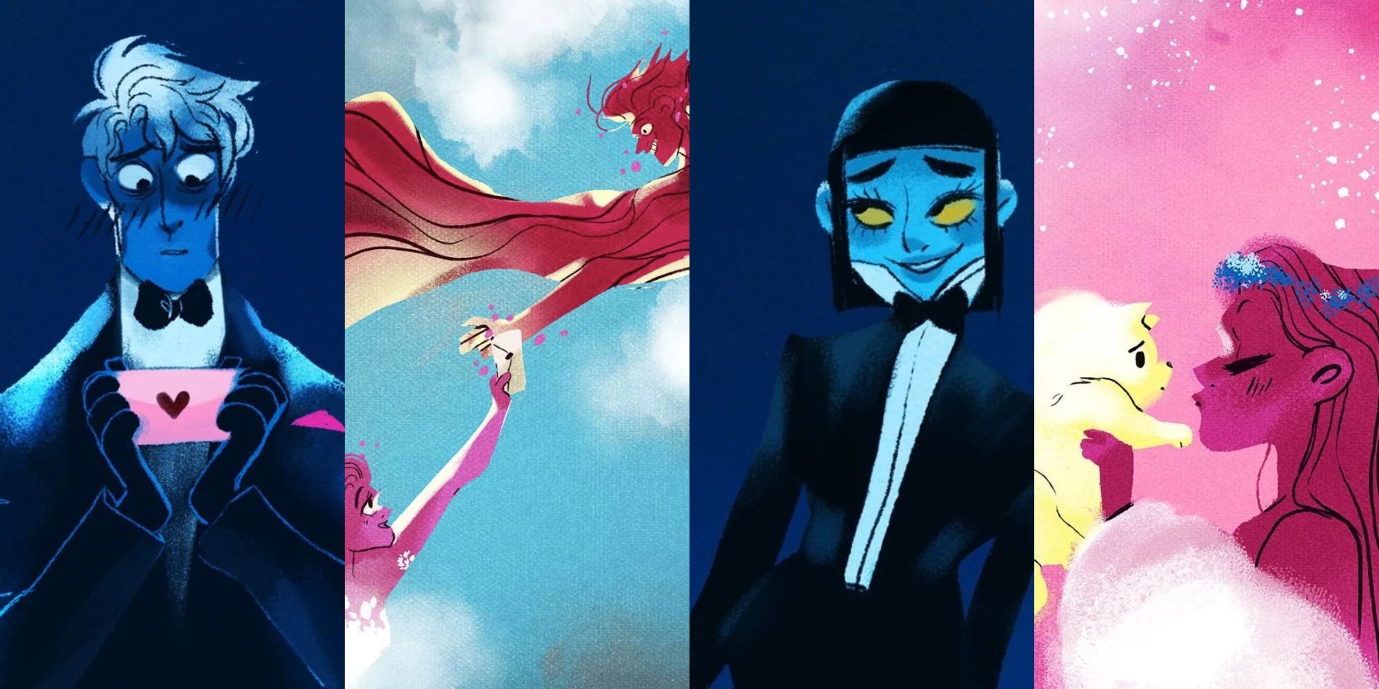 Pour la forme, le retournement n’est peut-être pas si fort. Avec ses personnages colorés, on se souvient du Hercule de Disney, avec ses formes fines et élégantes, on est dans le style contemporain, et les fonds sombres accentuent cette ambiance quasi lounge, frais, pas vraiment original mais accaparant le lecteur comme une série au charme incroyable. En jouant sur la séduction, les regards, mais aussi les gestes maladroits ou malsains, le dessin aime lui aussi ne pas trancher sur les frontières, dévoilant aussi bien la fragilité que la perversité, l’amour que l’obsession à travers ses personnages, ses lieux, qui montrent aussi bien des ailes d’Éros que des voitures de sport.