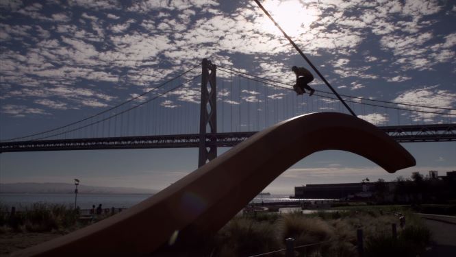 On voit le jeune skateboarder s’adonner à sa passion ou se droguer. Peut-être les deux faces d’une même addiction. On découvre surtout un jeune homme très seul. Il tente de raccrocher les wagons avec son amoureuse, laquelle a dû se décourager de son rapport insatiable à la drogue ou à l’alcool. La solitude est immense. En attestent ces grandes baies de mer où il est seul à avancer vers l’eau, en attestent ces chantiers perdus où il escalade les murs avec son skateboard. Le réalisateur ne laisse voir qu’une seule séquence où un ami tend la main à Pablo, dans une rue. Tout le reste n’est que solitude, parole face à lui-même.